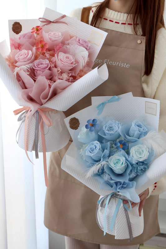 保鮮花丨夢幻韓風花束.粉藍